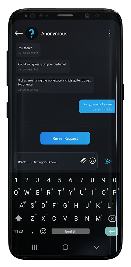 In BLUNT you can have one-on-one anonymous conversations with any of your coworkers.